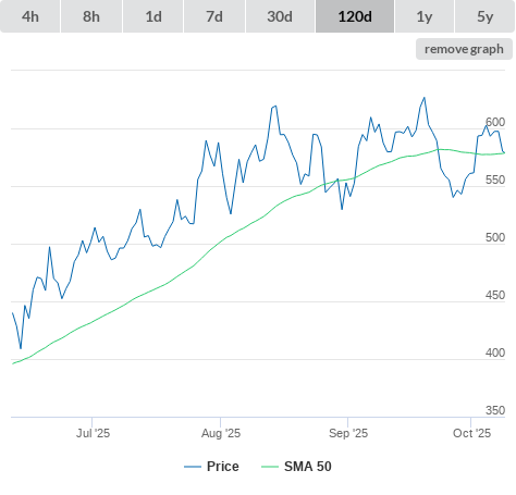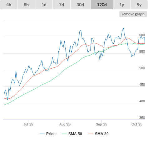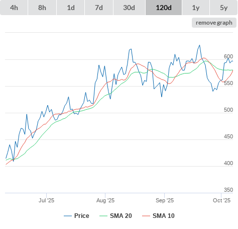13-10-25 SMA10 higher than SMA20. (false) sell