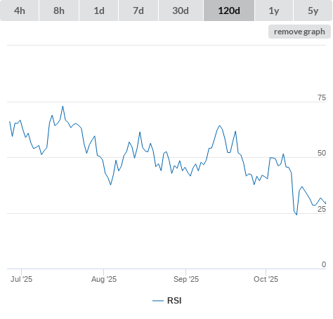 | 22-10-25 | RSI lower than 30 (true) | buy |