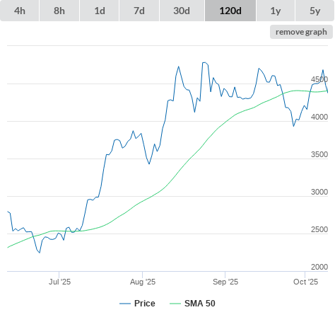 09-10-25 Price higher than SMA50. (false) sell