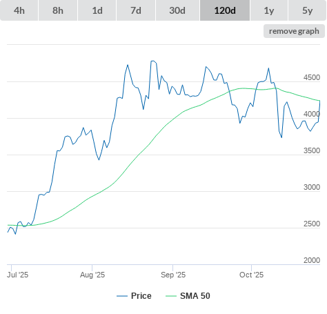 | Technical Indicators (moving averages) (click metric to see the graph on the left side) | |