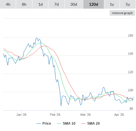 | Technical Indicators (moving averages) (click metric to see the graph on the left side) | |