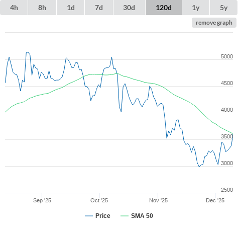 Technical Indicators (moving averages) (click metric to see the graph on the left side)