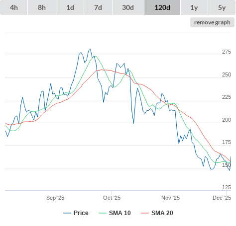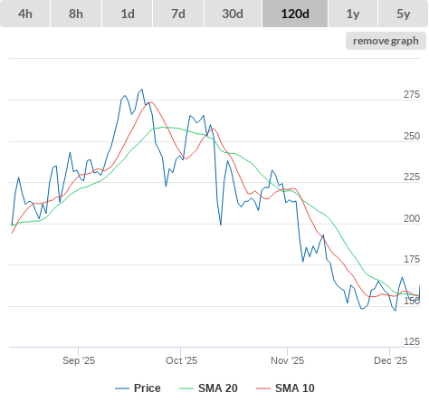 13-12-25 SMA10 higher than SMA20. (false) sell
