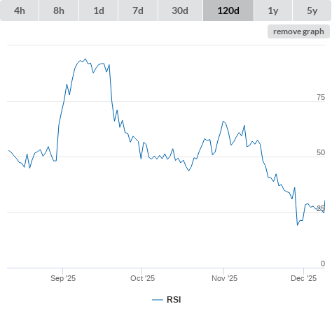 | Technical Indicators (oscillators) (click metric to see the graph on the left side) | |
