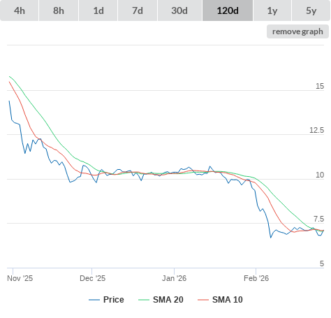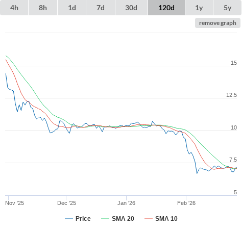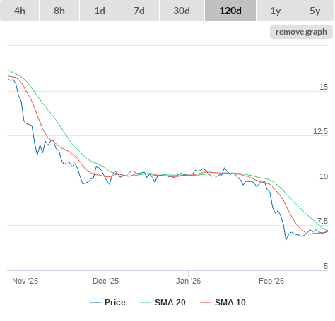27-02-26 SMA10 higher than SMA20. (false) sell