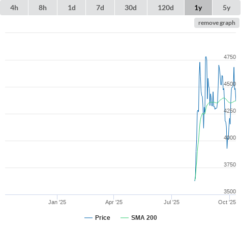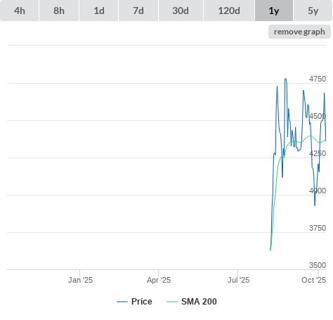 10-10-25 Price higher than SMA200. (true) buy