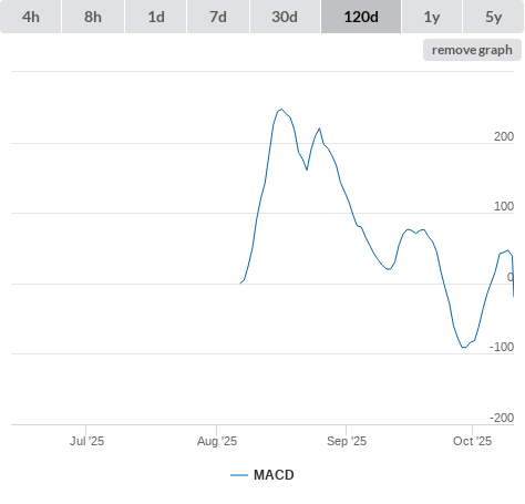 10-10-25 MACD higher than 0 (false) sell