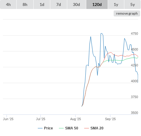 15-10-25 SMA50 higher than SMA200. (false) sell