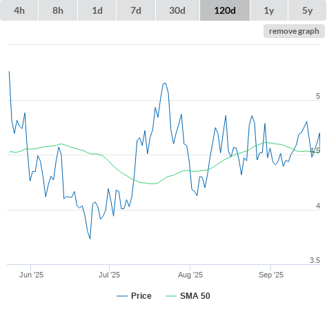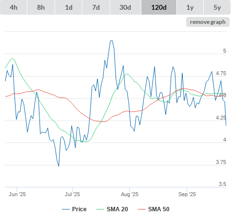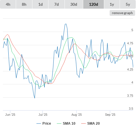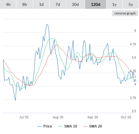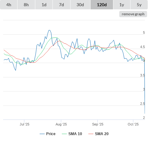 10-10-25 SMA10 higher than SMA20. (false) sell
