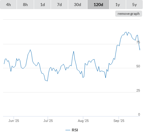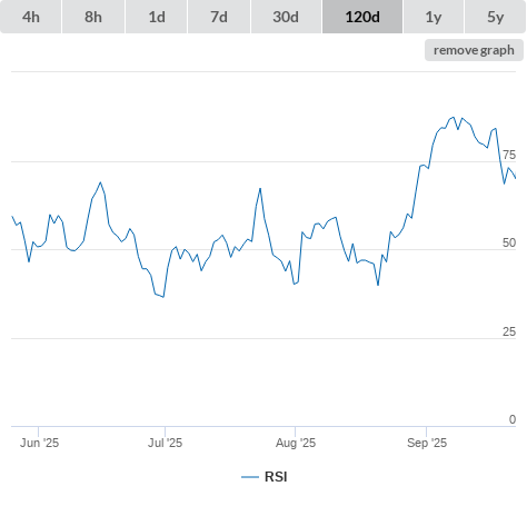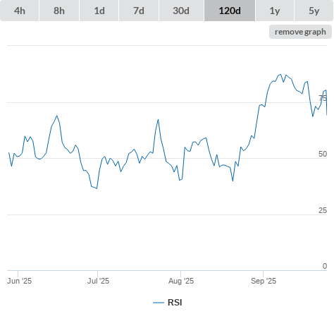 29-09-25 RSI higher than 70 (false) neutral