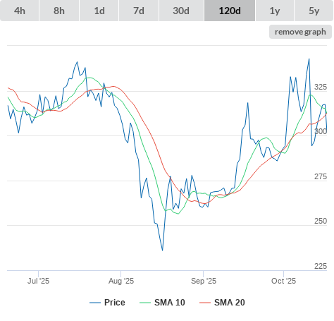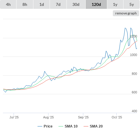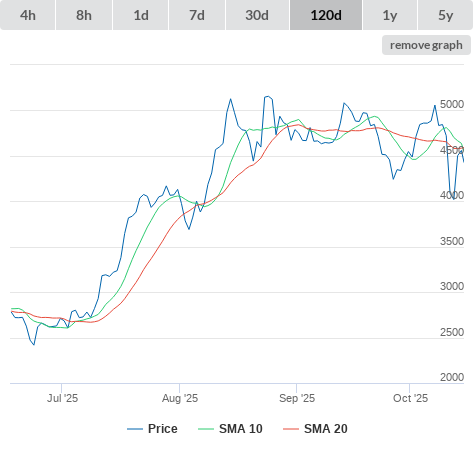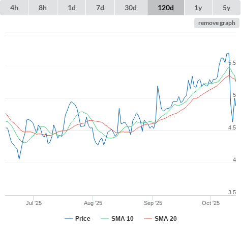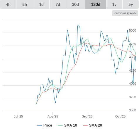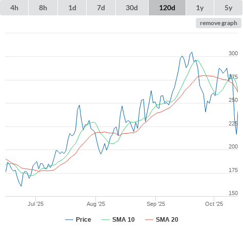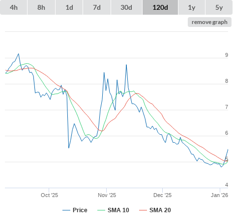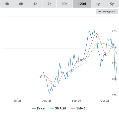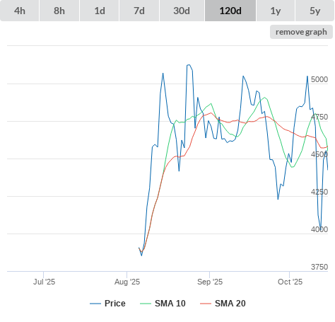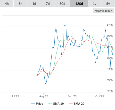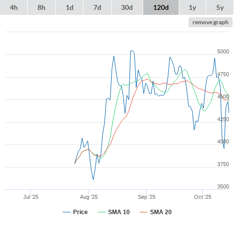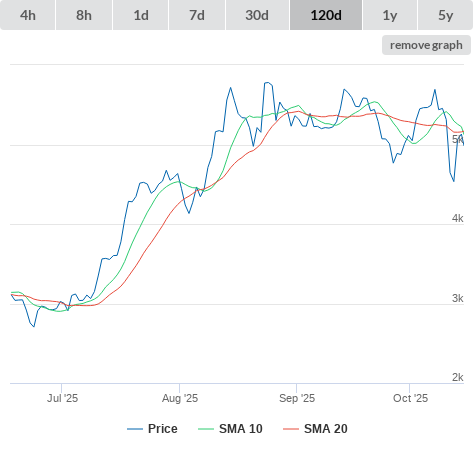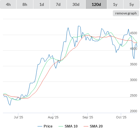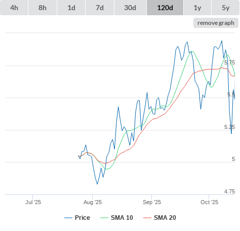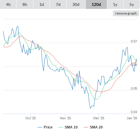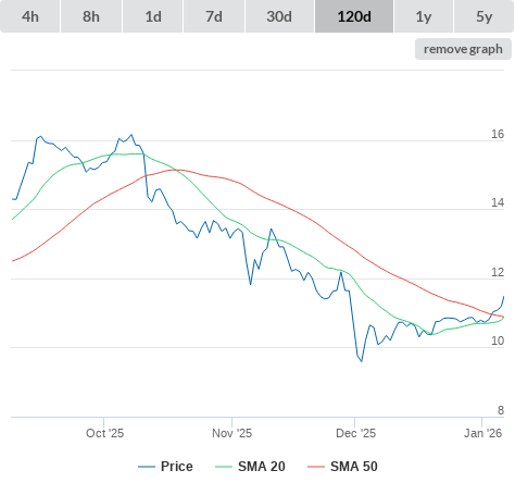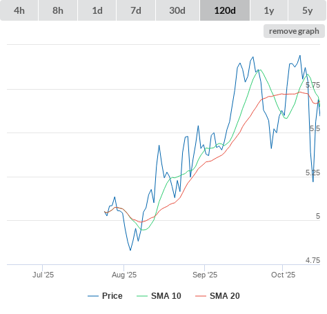 SMA10 higher than SMA20.