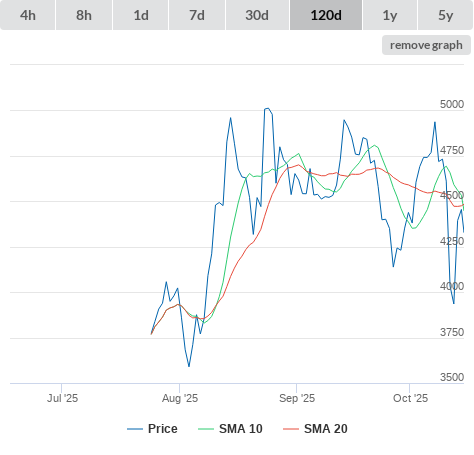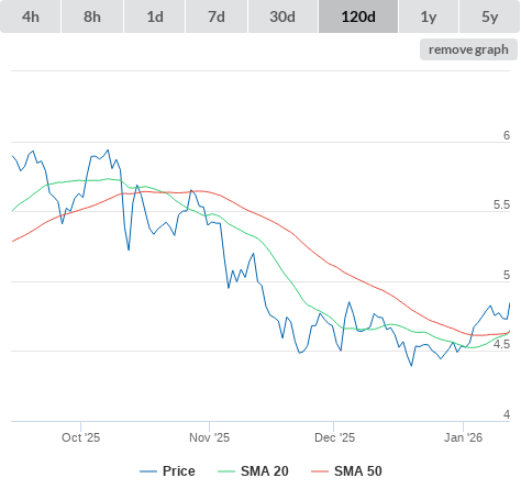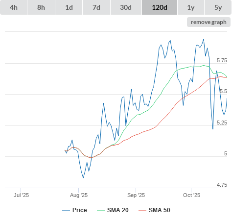 SMA20 higher than SMA50.