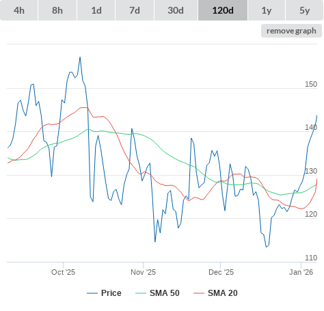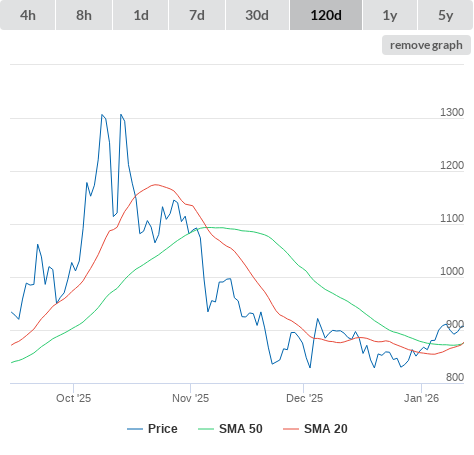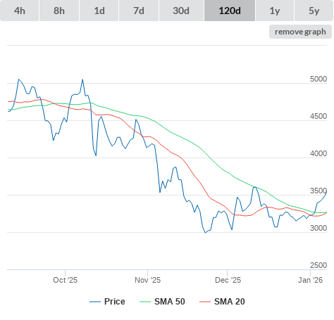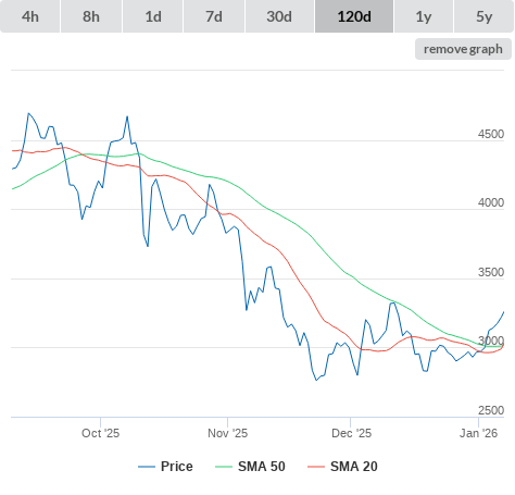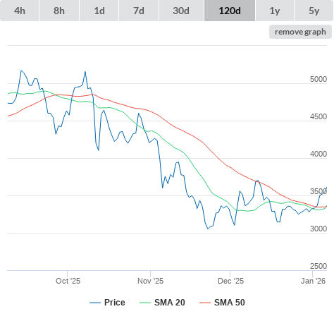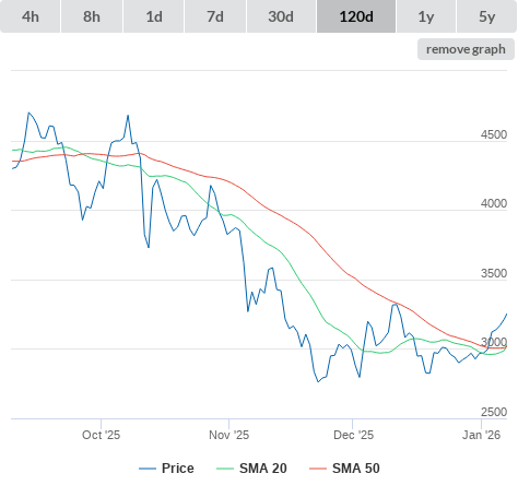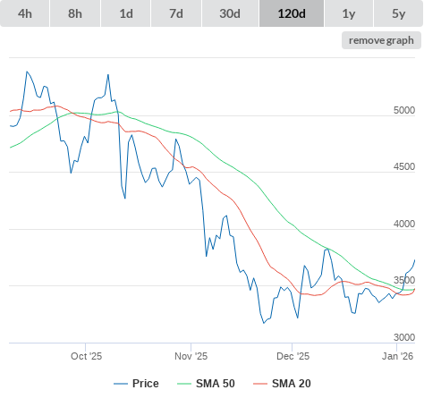 SMA50 higher than SMA200.